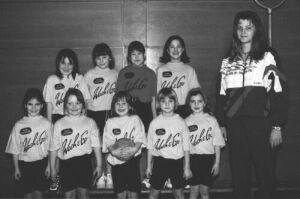 Hinten von links: Eva Sternecker, Lisa Friedrich, Ann-Christine Stein, Theresia Nunn, Trainerin Bettina Schäfer. Vorne von links: Melissa Blattner, Anna Sobotik, Marina Werner, Leslie Nowak, Jasmin Richter