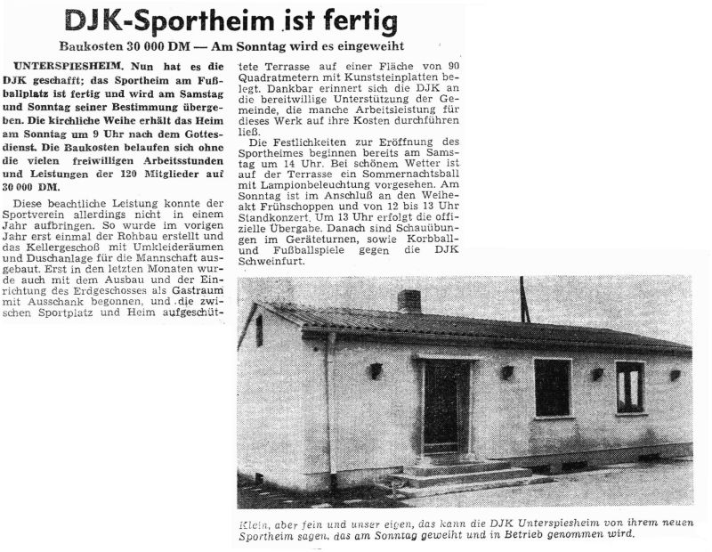Am 11. August 1963 wurde das Sportheim des SV DJK Unterspiesheim eingeweiht.