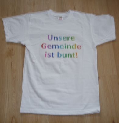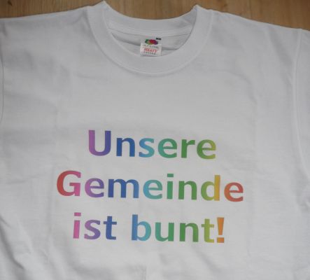 | Unsere Gemeinde ist B U N T !Der Sportverein SV DJK Unterspiesheim unterstützt die Aktion "Unsere Gemeinde ist Bunt",eine Aktivität der Gemeinde Kolitzheim gegen Rechts.T-Shirt-AktionAls weitere Aktivität wurde von Mitgliedern des SV DJK Unterspiesheim der Druck von T-Shirts mit der Aufschrift "Unsere Gemeinde ist bunt" organisiert und ein Aufruf gestartet. Unter dem Motto "Unsere Gemeinde ist bunt" würden wir gerne ein Zeichen der