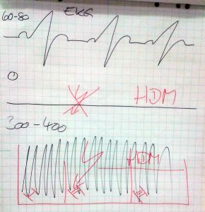 Elektroden auf dem Brustkorb des Patienten aufgebracht sind, analysiert das