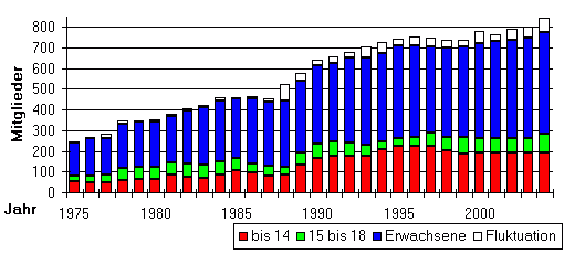 eigener Bericht / OLI 29.11.2004 SV DJK Unterspiesheim so beliebt wie nie zuvorMitgliederzahl in RekordhöheUnser Sportverein feierte vor wenigen Wochen sein 75jähriges Bestehen. Während der Festtage war immer wieder die Rede von "Helden", meist unauffällige und im Hintergrund arbeitende Mitglieder, die zur Erfolgsgeschichte "ihres Vereins" beigetragen haben. Wahrlich ist das Engagement der vielen ehrenamtlichen Frauen und Männer, die viel Zeit und Mühe einsetzen, lobenswert. Die entfachte Begeisterung wird ihren Teil dazu beigetragen haben, dass die Mitgliederliste immer länger wird: Wie Schriftführer Jochen Brand mitteilt, zählt der SV DJK Unterspiesheim e.V. derzeit 775 Mitglieder - ein "Allzeithoch", d.h. eine nie zuvor erfaßte Zahl. Darüber freut sich auch der 1. Vorsitzende Olaf Irrgang: "Die Unterspiesheimer lieben ihre DJK. Es stimmt mich glücklich, dass sich immer mehr Sportbegeisterte unserem Verein anschließen. In einer Zeit gesellschaftlicher Veränderungen und angesichts anderer Alltagssorgen ist diese Entwicklung erstaunlich. Sie unterstreicht, dass sich die Spesemer der Werte, die das Vereinsleben beinhalten, bewusst sind."