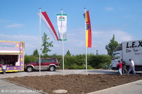 ![]() Das Bild zeigt die neuen Fahnenstangen, die zum 21. Spiesheimer Bierfest erstmals "beflaggt" wurden Sportgelände aufgestellt wurden. |