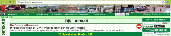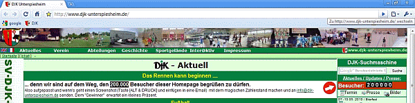 ... am 20. März um ca. 17:05 konnten wir den 100.000 Besucher auf der DJK Homepage begrüßen.
