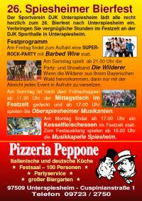 Das Spiesheimer Bierfest, findet im Jahr 2010 vom 07. bis 10. Mai auf dem Festplatz an der DJK-Sporthalle in Unterspiesheim statt.
