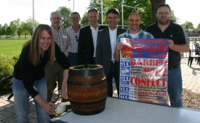 ![]() Bieranstich: Am 11. Mai beginnt das 28. Unterspiesheimer Bierfest. Im Bild von links bei der Bierprobe des Krautheimer Gerstensaftes der Vorsitzende der DJK Unterspiesheim, Markus Ebert, Brauerei-Verkaufsleiter Johannes Kram, zweiter Vorsitzender Volker Erich, Bürgermeister Horst Herbert, zweiter Bürgermeister Martin Mack, Vereinsausschussmitglied Klaus Köpfer und Schriftführer Jochen Brand. / Foto SV DJK Unterspiesheim |