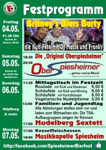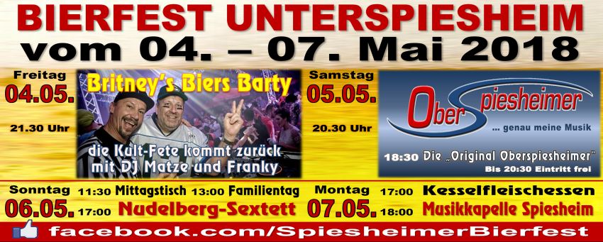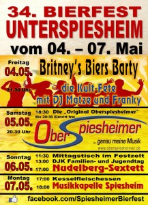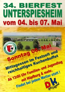 34. Spiesheimer Bierfest 2018Das 34. Spiesheimer Bierfest, findet vom 04. bis 07. Mai 2018 auf dem Festplatz an der DJK-Sporthalle in Unterspiesheim statt.
