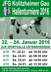 JFG Hallenturnier 2016 findet vom 22.01.2016 bis 24.01.2016 in der Sporthalle