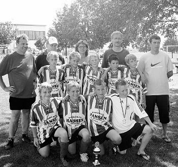 In der Gruppe U9-F2 siegte die Mannschaft des TSV 07 Bergrheinfeld 2 beim Mastersturnier in Unterspiesheim souverän. Hinten (von links): Betreuer Andréa Baldan, Marcel Imioleyk, Keller Moritz, Marcel Behr, Timo Griebel, Steffen Böhm, Betreuer Peter Griebel. Vorne: Marius Eusemann, Luca Pfister, Luis Neupartel und Giuliano Baldan. |