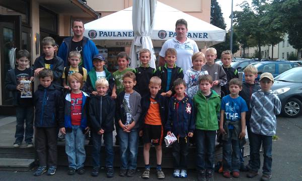 Die U9 Fußballmannschaft der DJK Unterspiesheim hat die zweite Spielzeit in Folge alle Verbandsspiele gewonnen. Saisonübergreifend wurden dabei 113 Tore erzielt und unsere Gegner durften nur 14 mal jubeln. Am 15. Juli wurde ein Einlagespiel beim Gemeindepokal in Grettstadt gegen die ebenfalls seit längerer Zeit unbesiegte Grettstadter U9 knapp mit 3:2 gewonnen. Die Teilnahme an drei Sommerturnieren war leider nicht so erfolgreich. Das beste Ergebnis erreichten wir in Oberpleichfeld mit einem dritten Platz. Auf dem Foto sind unsere Nachwuchskicker beim gemeinsamen Kinobesuch in Schweinfurt zu sehen. Durch eine großzügige Spende haben wir uns in Schweinfurt einen kompletten Kinosaal im KuK gemietet und zusammen Ice Age 4 angeschaut. Brand Michael und Schramm Holger |