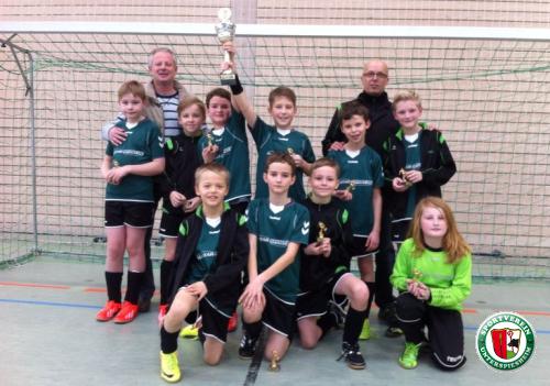 Die Jungs sind voller Freude nach dem zweiten gewonnen Hallenturnier in Folge.