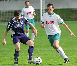 Schweinfurter Sportwoche 11/2007 Kreisliga 1 - Ähnlich wenig aufregend wie in der Gruppe 2 verläuft das Rennen um die Meisterschaft in der Schweinfurter Kreisliga 1. Ist es da der Nachbar aus Sennfeld, der ab Sommer 2007 Bezirksliga-Gegner werden dürfte, so scheint auch die DJK Schweinfurt wieder in höhere Fußball- Gefilden zurückzukehren. Nur gegen Röthlein verlor die DJK bislang, gewann 13 Mal, zuletzt zuhause gegen Unterspiesheim und Waigolshausen, zwei Verfolger also, jüngst mit 9:1 gegen das bedauernswerte Schlusslicht Hilalspor Schweinfurt, als der Leader mit Keeper Lukas Kackis Eigentor auch noch den Ehrentreffer besorgte. In Schwemmelsbach und gegen Herlheim / Zeilitzheim müsste sich die DJK, am 2. November-Wochenende spielfrei, ebenfalls durchsetzen können. Lediglich am 2. Dezember winken in Mühlhausen Probleme. Wobei der Bezirksliga- Absteiger jüngst dem TSV Röthlein, Gleichgesinnten also, ein Fortsetzen der Serie ermöglichte. Vierter ist Röthlein jetzt schon nach dem fatalen Saisonstart, peilt tatsächlich Rang zwei an und wird gegen Kleinlangheim und Frankenwinheim, bei zwei nun folgenden Heimspielen, sicher auch nicht schwächen wollen, ehe bei der FTS II und gegen Unterspiesheim echte Schlagerspiele folgen. Im Keller stehen Euerbach und Schwemmelsbach zwar vor Hilalspor, in beiden Fällen beträgt jedoch der Abstand zu den beiden Landkreis-Kitzingen- Clubs aus Geiselwind und Kleinlangheim bereits fünf Zähler. Beim Schwemmelsbacher 2:5 gegen Egenhausen traf Stefan Full im Bruderduell besser als Marco, beim Euerbacher 2:6 in Kleinlangheim war Lukas Golombek Matchwinner der Hausherren, vermissten die Gäste den verletzten Spielertrainer Daniel Tomitza. Vor den nächsten schweren Spielen hat Euerbach nun zunächst die gegen Wipfeld unterlegenen Frankenwinheimer zu Gast. Schwemmelsbach dürfte bei Hilalspor im Kellerduellpunkten, ehe dann der Spitzenreiter bei der DJK gastiert. Ein echtes Spitzenspiel am zweiten November- Wochenende ist der Auftritt der Freien Turner beim FC Wipfeld, der es im gesamten Monat nur mit Kalibern zu tun hat. Schweinfurter Sportwoche 11/2007 Kreisliga 1 - Wer will sie stoppen, die DJK Schweinfurt? An sich hofften die