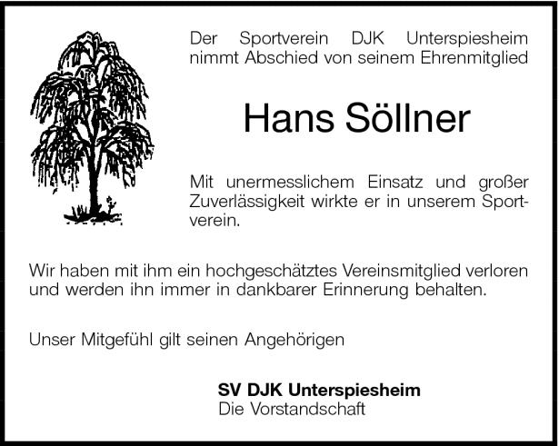Nachruf an unser Ehrenmitglied Hans Söllner