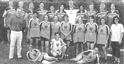 Unterspiesheim. Die Unterspiesheimer Korbballdamen siegten souverän im Endspiel über die Mannschaft des SV Stammheim mit 4:1 Körbe. Im Bild die beiden teilnehmenden Mannschaften des Endspieles, Bürgermeister Horst Herbert, Abteilungsleiterin Inge Henkel und Gemeinderätin Karin Brehm aus