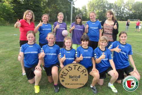 ![]() Das Bild zeigt unsere Meistermannschaft die Korbball Jugend 12: vorne : Eva Kunkel, Lena Peppel, Marie Bonfig, Mareike Götz, Simone Müller, Jule Hänsch hinten : Trainerin Anja Bauer, Lea Bauer, Lara Bonfig, Nele Hänsch, Hanna Ebert, Trainerin Nina Bauer Zur Mannschaft gehören noch Susanna Kobosil und Melina Rath |