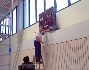 Die ersten Sportgeräte sind geliefert und auch der Trennvorhang und die